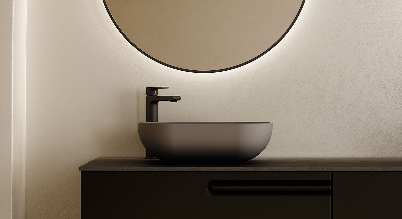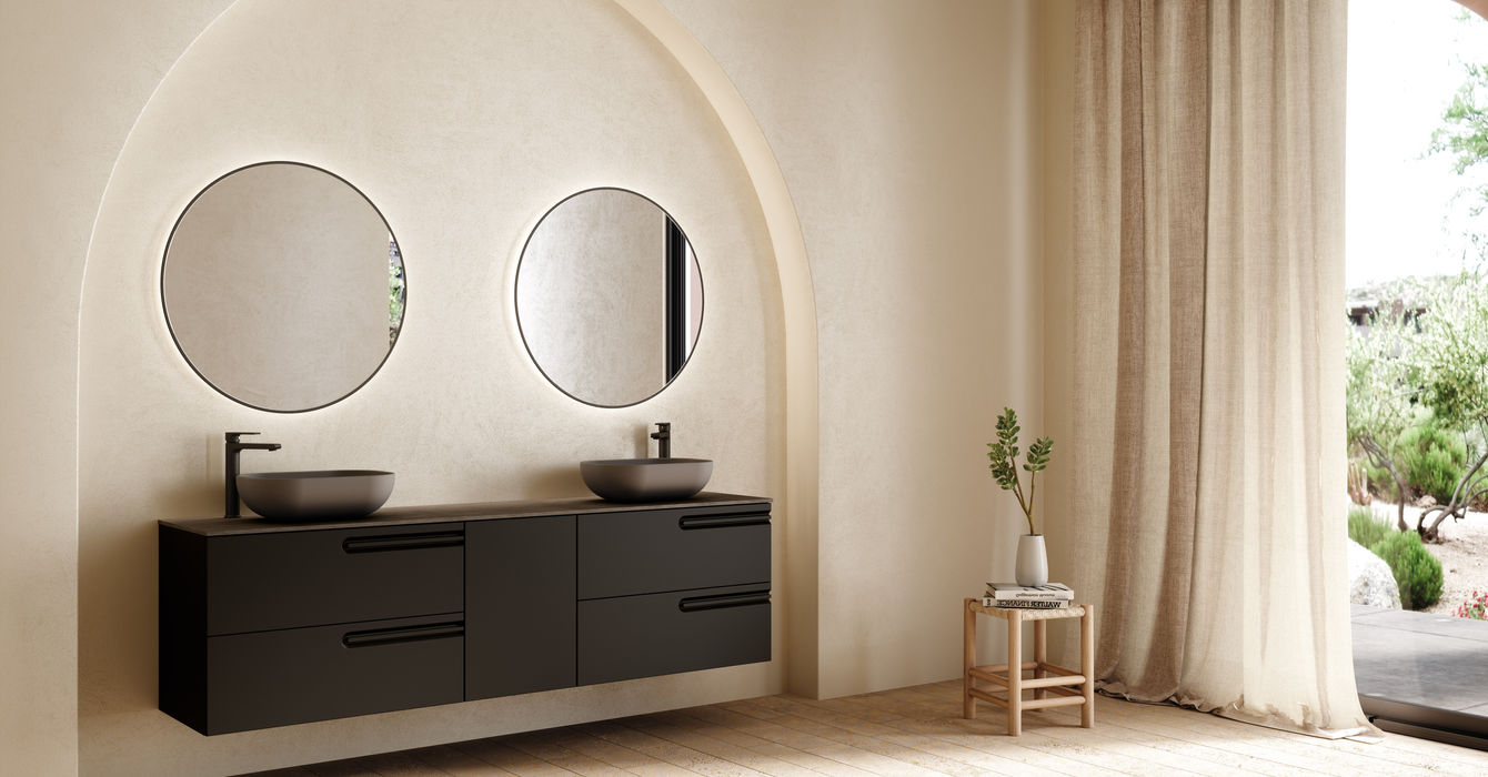 Die "Econic Modular" Kollektion von Royo wurde anlässlich des 50. Jubiläums geschaffen und ist ein Blick in die Natur. Die runden Formen, der einzigartige Griff, Waschbecken und Spiegel spiegeln die Schönheit von Bergen und Flüssen wider. Die Schubladen sind mit Fume-Leder verkleidet und die Oberflächen werden umweltfreundlich mit Wasserlack veredelt. Hettich Total Extraction Schienen sorgen für reibungslose Funktionalität. Die Kollektion bietet die Wahl zwischen integriertem oder Aufsatzwaschbecken. "Econic Modular" vereint Naturinspiration und Eleganz im Badezimmer.