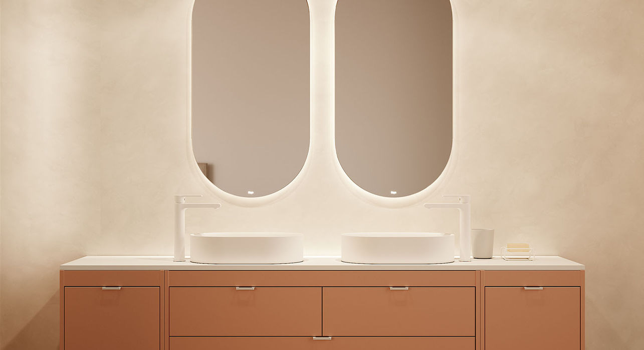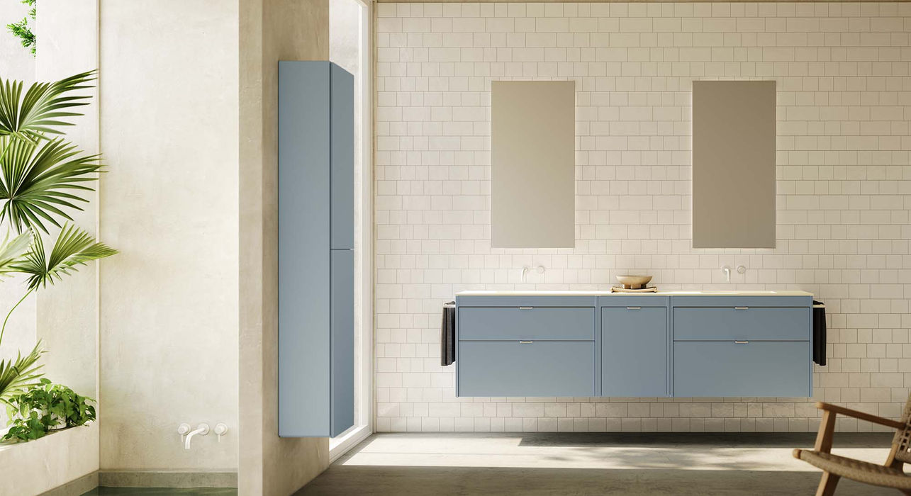 "Logika" Badmöbel verwandeln das Badezimmer in das neue Herz des Hauses. Ihr Design zeichnet sich durch klare Linien, asymmetrische Arbeitsplatten und diskret integrierte Griffe aus. Sie verfügen über eine 45 cm tiefe Metallschublade mit hochwertiger Ästhetik und zwei Anpassungsoptionen. Das Schrankmodul bietet Hettich-Schubladenführungen und einen geräumigen Metallkorb aus lackiertem Stahl mit 46 Litern Fassungsvermögen. Die innovative Komposition ermöglicht Flexibilität mit zwei kleinen Schubladen oben und einem großen Speicher unten, insgesamt 120 cm breit. Die Schubladen sind in Anthrazit gehalten und es stehen 6 Melamin-Oberflächen (4 farbige und 2 holzige) sowie 3 Griff-Finishes (Weiß, Anthrazit und Inox) zur Auswahl. Zusätzlich gibt es die Option eines integrierten oder Aufsatzwaschbeckens. "Logika" vereint Funktionalität und Ästhetik im Badezimmer.